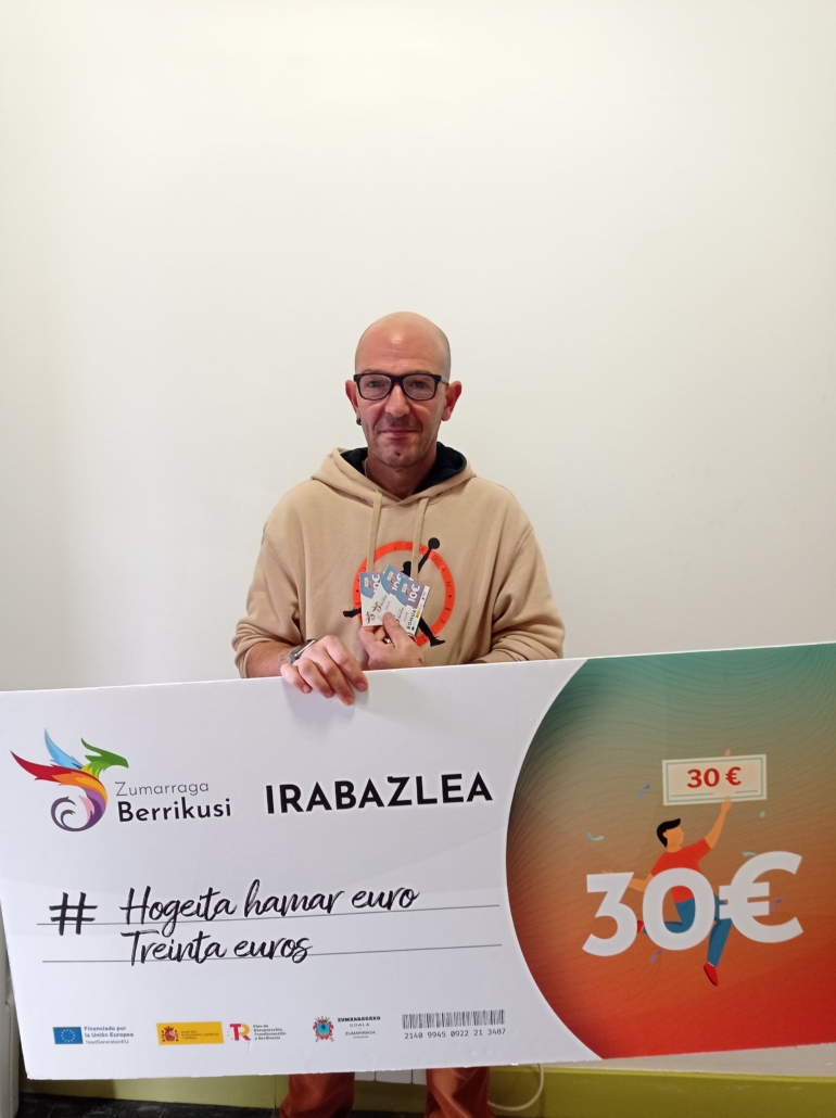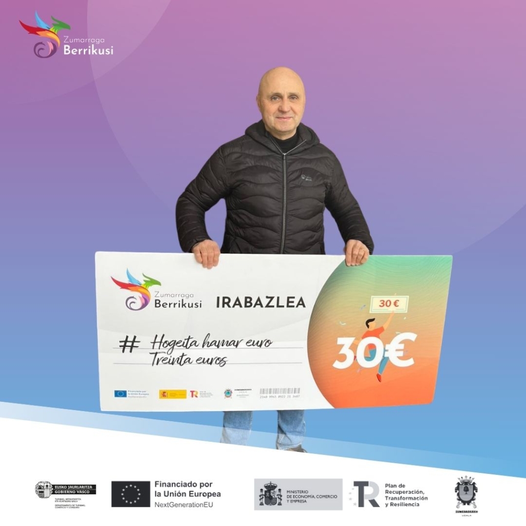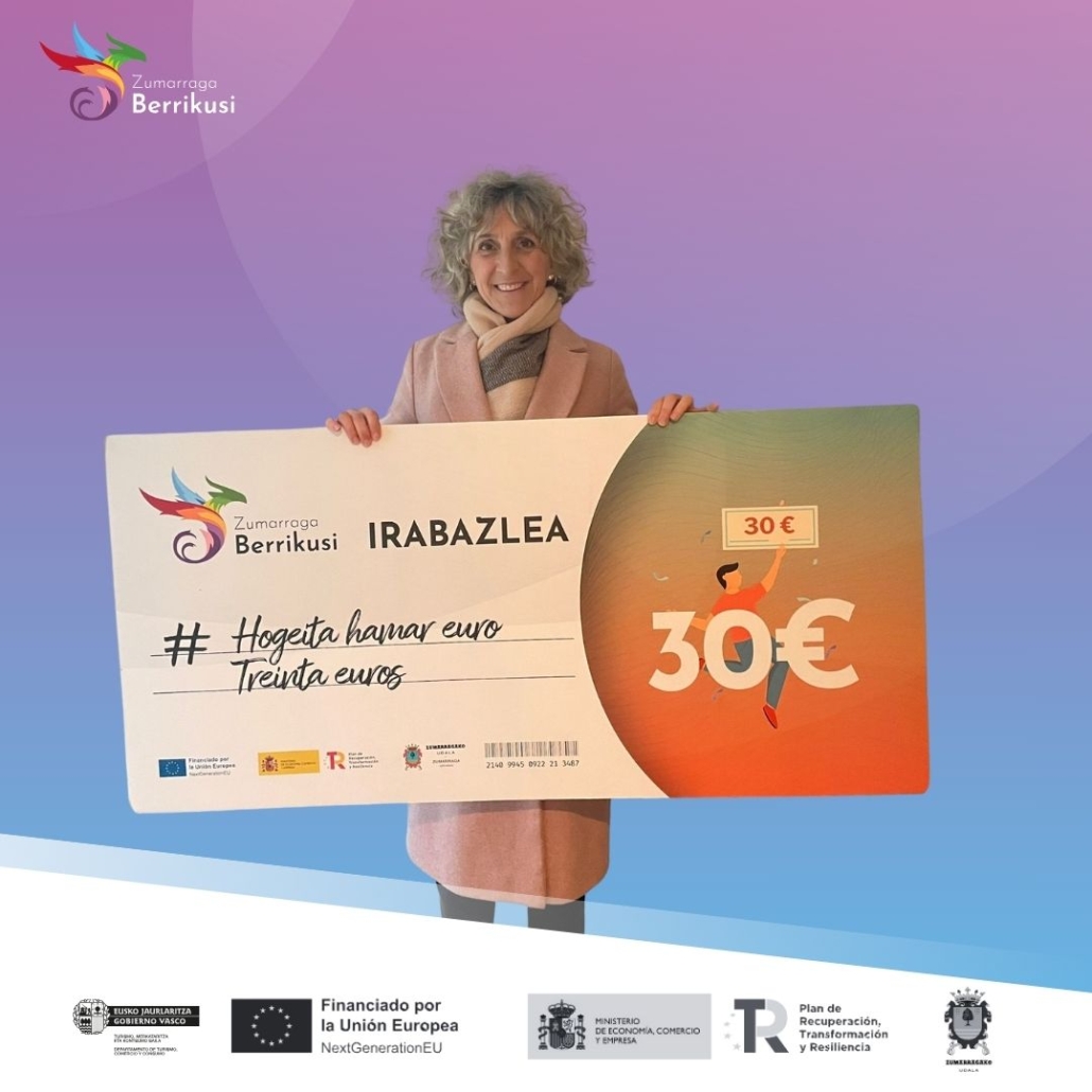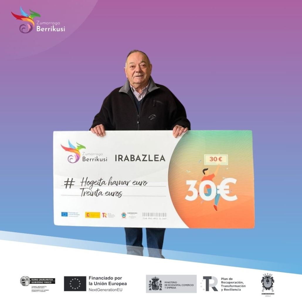 Participa en el sorteo de 1 premio de 300€ y 10 de 30€ cada mes en septiembre, octubre, noviembre y diciembre de 2024 haciendo tus compras en el comercio de Zumarraga.